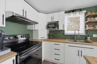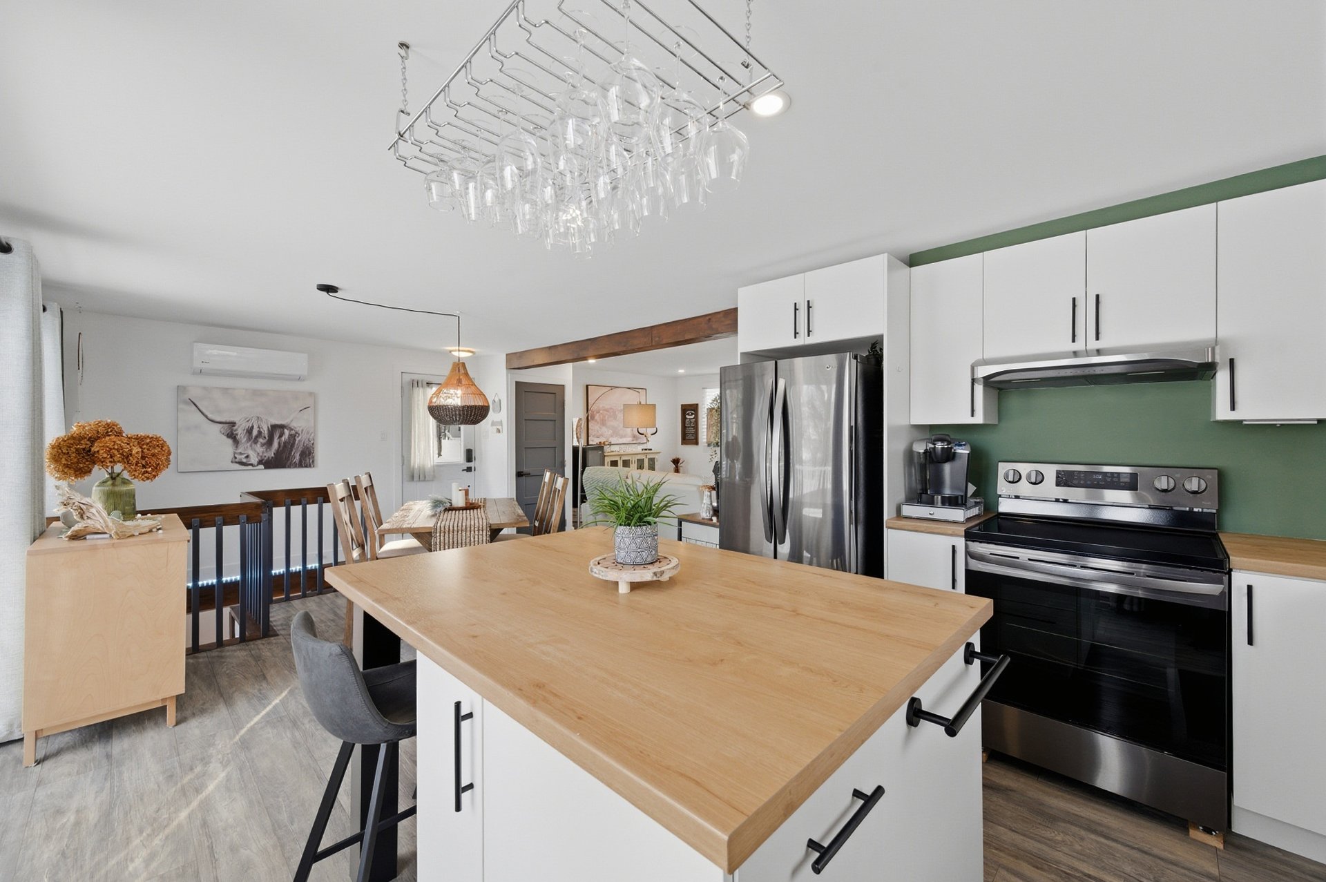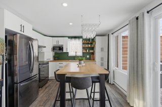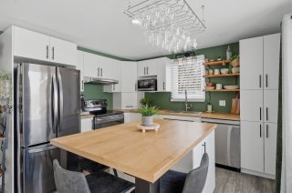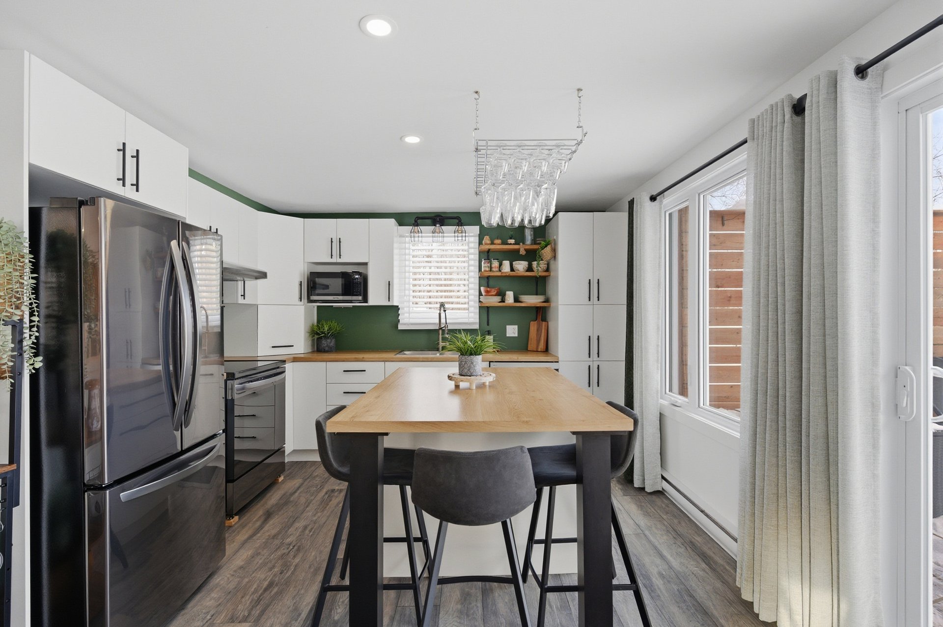 Exclus : Raque à coupes de vin au dessus de l'ilot, lave-vaisselle, rideaux de cuisine et salle à manger