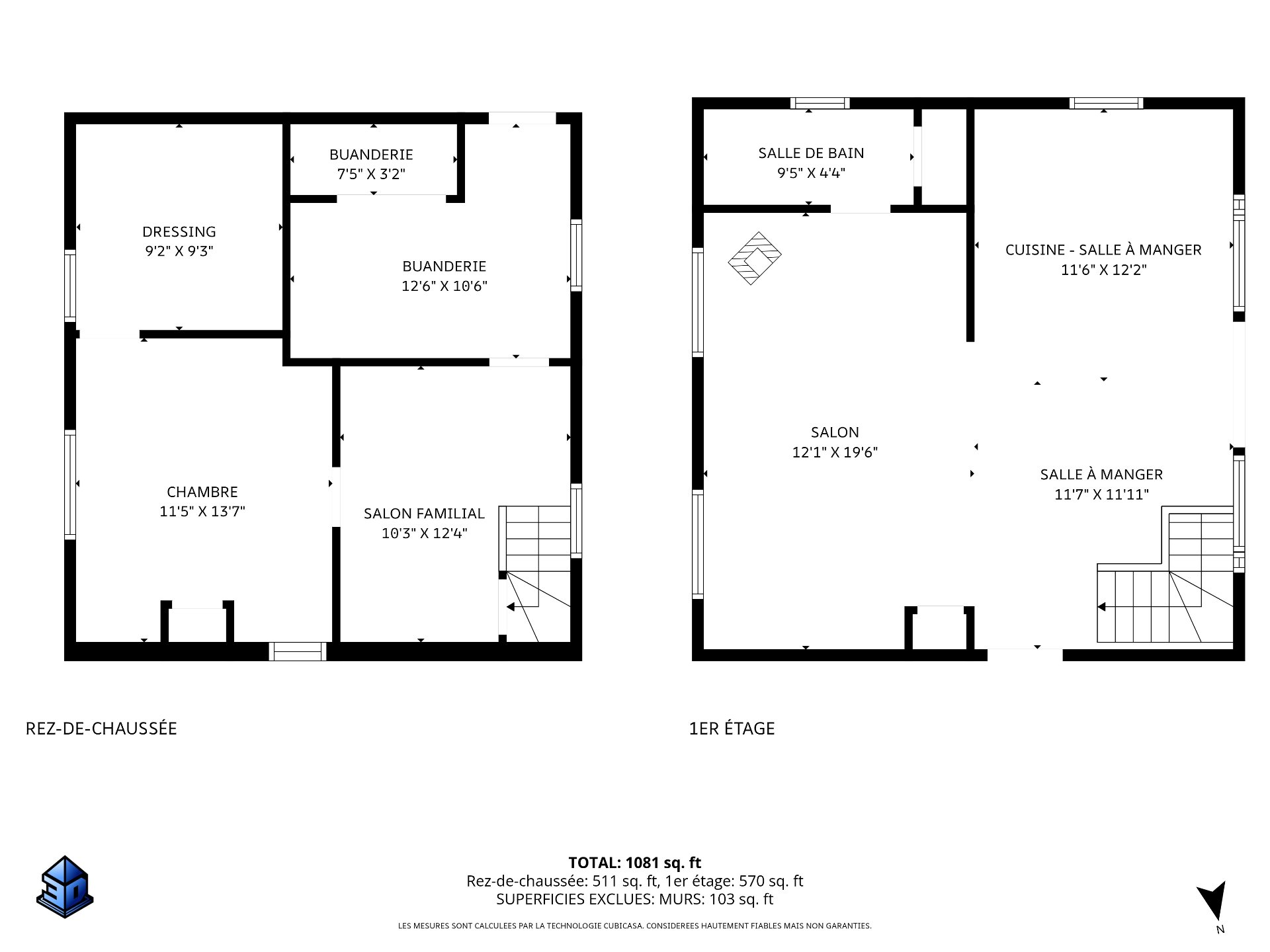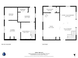 | Salon | 12.1 x 19.6 P | Rez-de-chaussée | Plancher flottant |