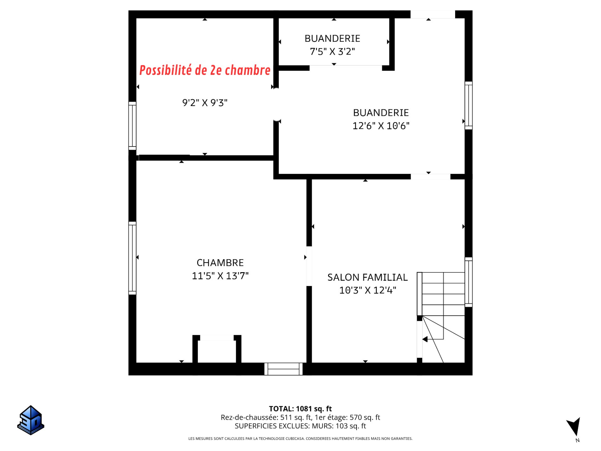 | Salle de lavage | 12.6 x 10.6 P | Sous-sol | Béton |